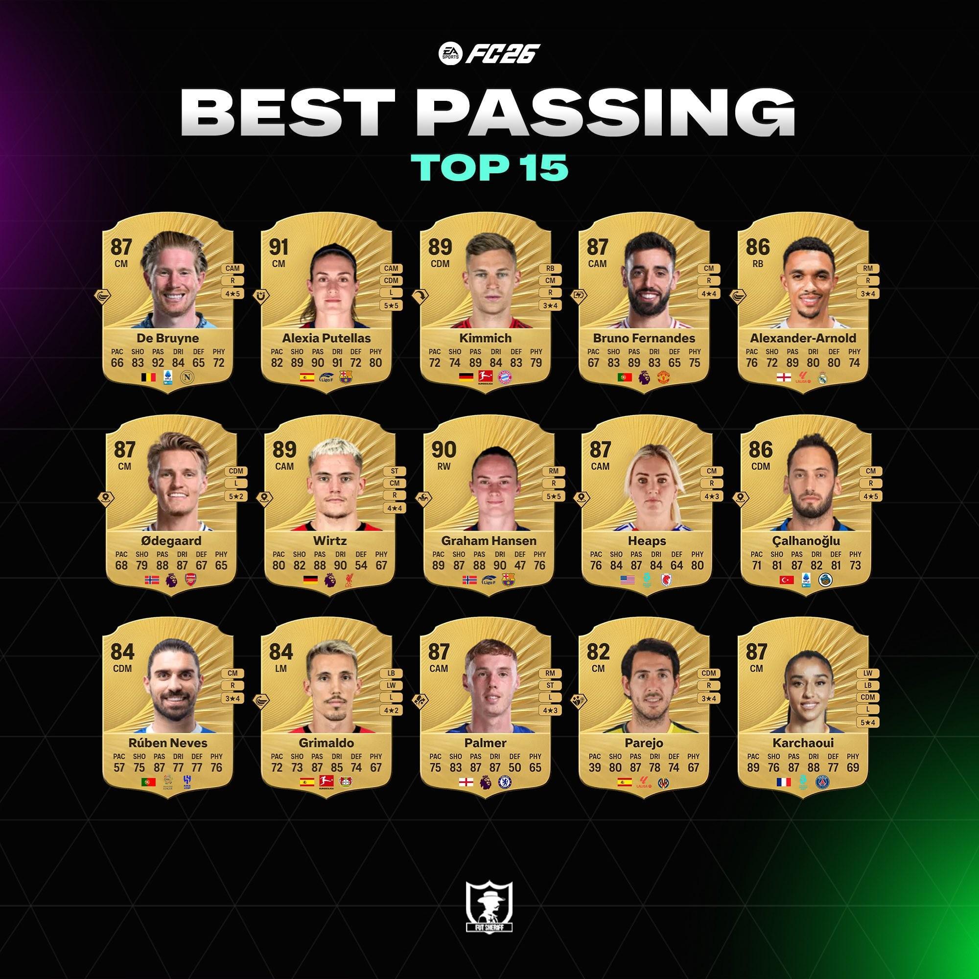 《FC26》的传球前15球员已经遭到曝光,其中,德布劳内第一,基米希、B费、阿诺德、厄德高在列。